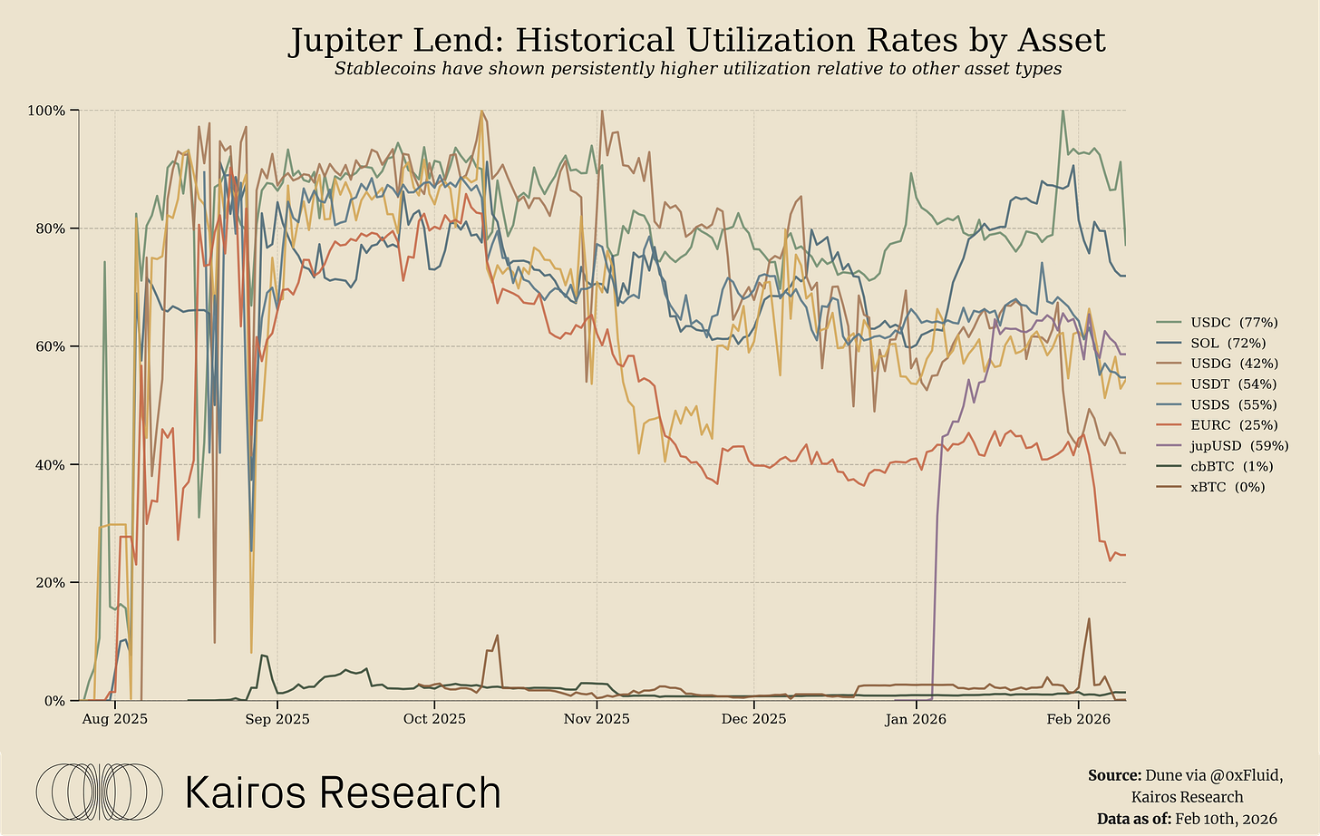 Optimal Capital Efficiency: Jupiter Lend’s integration with Fluid enables capital efficiency primarily through a shared liquidity and risk framework rather than higher leverage alone. Assets supplied via Jupiter Lend, including through vault-based products, ultimately route into the same underlying liquidity layer, allowing borrowing demand across products to draw from a unified pool of capital. This design improves utilization by reducing liquidity fragmentation and ensuring that deposits are accessible to borrowing demand across Jupiter’s ecosystem. Together, this architecture allows Jupiter Lend to deploy capital more efficiently without relying on complex collateral reuse mechanisms. It is also important that despite operating through several periods of market volatility, Fluid has not recorded any bad debt to date.