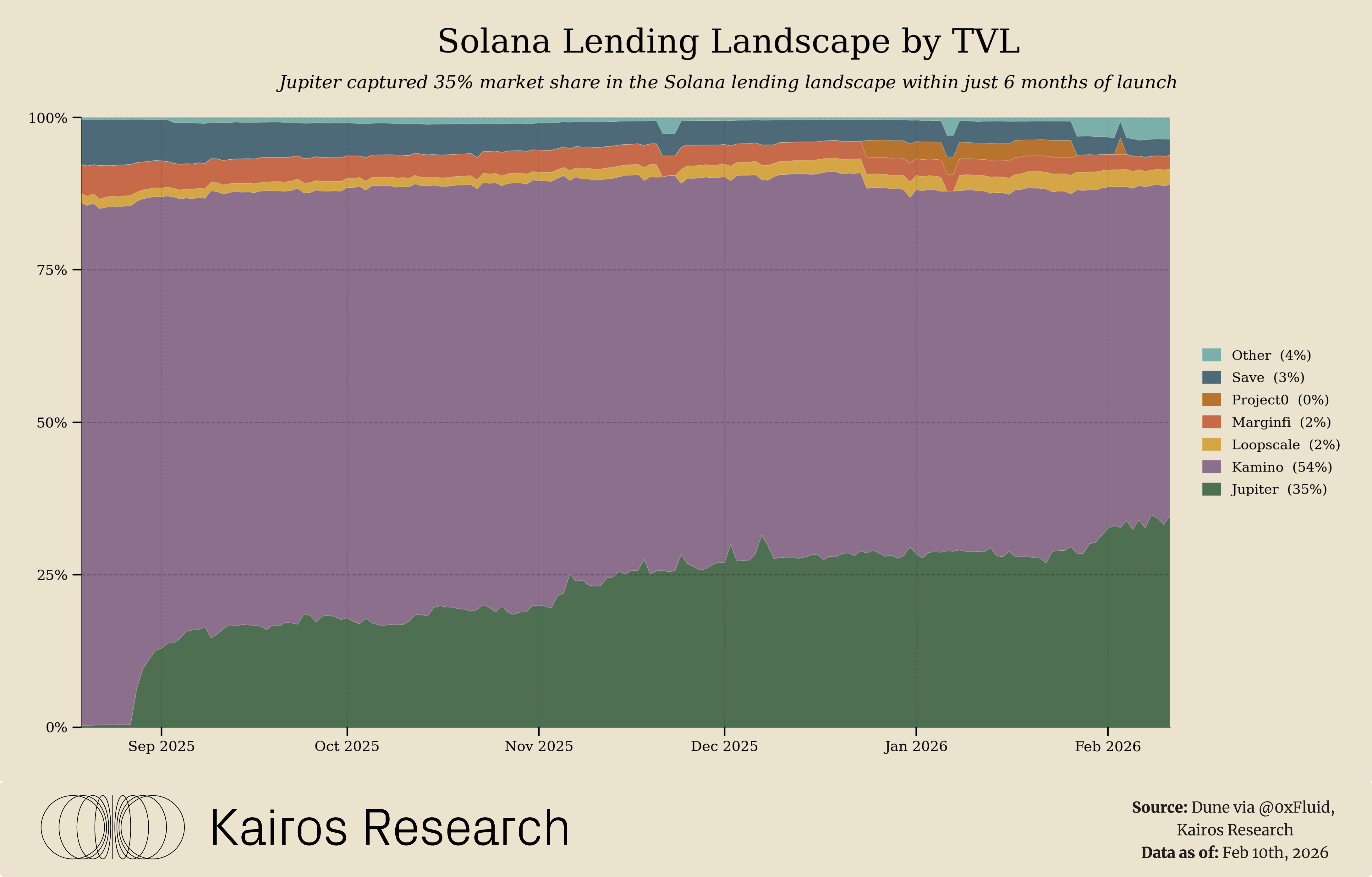 New Collateral Support via RainFi (Jupiter Orderbook): Jupiter isn’t stopping at mainstream assets, it recently acquired RainFi, a lending tech platform, to launch “Jupiter Orderbook,” a peer-to-peer lending product in Q1 2026. This expansion will enable lending against more long-tail and off-chain assets that aren’t suited for pooled lending markets. In other words, Jupiter could support collateral like tokenized stocks, longertail altcoins, or other bespoke assets by matching lenders and borrowers directly, orderbook style, rather than relying on a shared liquidity pool. Kamino has already moved in this direction, as it was first to accept tokenized equities as collateral, Jupiter clearly wants to one-up competitors by offering a broader menu of collateral options. If executed well, this can attract niche lending demand and institutional players who want to borrow against non-traditional assets on Solana. The RainFi-powered product also suggests Jupiter is addressing the limitations of its Fluid-based model, which currently focuses on a set of whitelisted vault assets, by adding a flexible P2P layer. New collateral support, combined with Jupiter’s large user base, could significantly boost Jupiter Lend’s market share and increase the total addressable market of borrowers in early 2026.