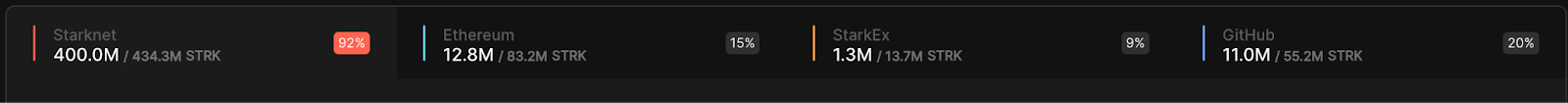 In the ~30 hours after the airdrop was released, 425M STRK have been claimed with a heavy skew towards network users over Ethereum contributors, StarkEx users or Github contributors.
